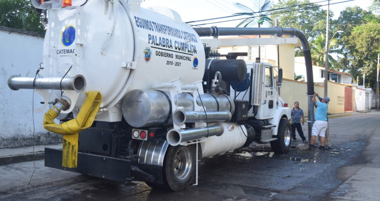 El Camión vactor único en su género motriz y propiedad del Ayuntamiento de Catemaco ya está en funciones aplicando técnicas de desazolve en la red de drenaje sanitario en calles de la zona urbana de la ciudad.