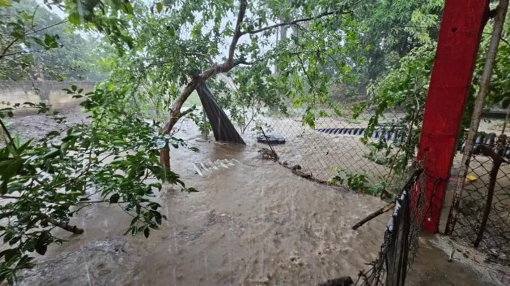 También un domicilio sufrió inundación por agua de lluvia en la calle Chichen Itza de la colonia El Mirador donde un tubo conector pluvial se tapó.