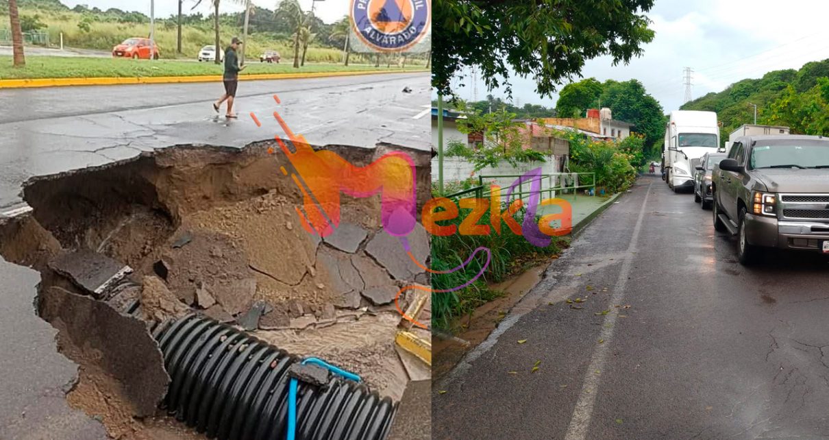 Un mega socavón se registra la mañana de este miércoles en la carretera Veracruz-Alvarado, que ocupa medio carril y tiene una profundidad de unos 2 a 3 metros, alertó el director de Protección Civil, Daniel Romero.