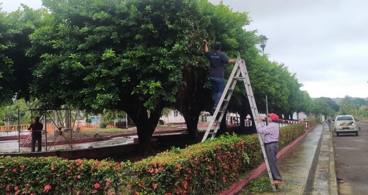 Por instrucciones del alcalde Julio César Garcia Machucho se da mantenimiento a las áreas verdes en el parque de la localidad de Tecolapan, con el objetivo de embellecer el espacio donde asiste la familia a realizar actividades recreativas.