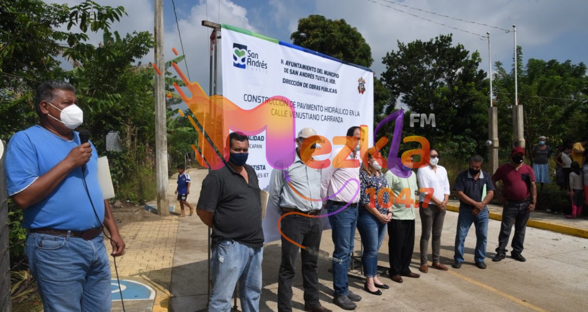 San Andrés Tuxtla, Ver.- “Es un gusto poder llegar aquí a Matacapan de nueva cuenta, no hace mucho estuvimos presentes entregando la desgranadora para los ejidatarios que producen maíz en esta zona, también estuvimos entregando los útiles escolares y ahora estamos aquí inaugurando esta calle”, comentó el Presidente Municipal de San Andrés Tuxtla, Octavio Pérez Garay, durante la inauguración de la obra de pavimentación con guarniciones, banquetas, red hidráulica, drenaje pluvial y sanitario en Calle Venustiano Carranza de la comunidad de Matacapan.