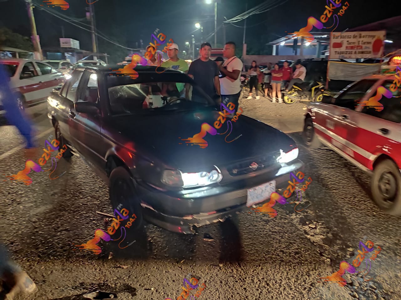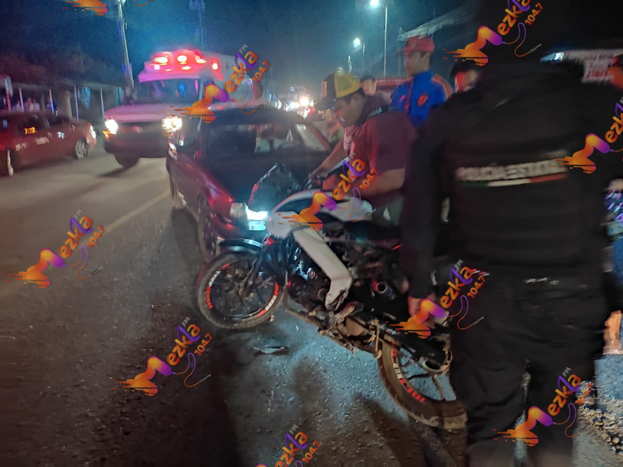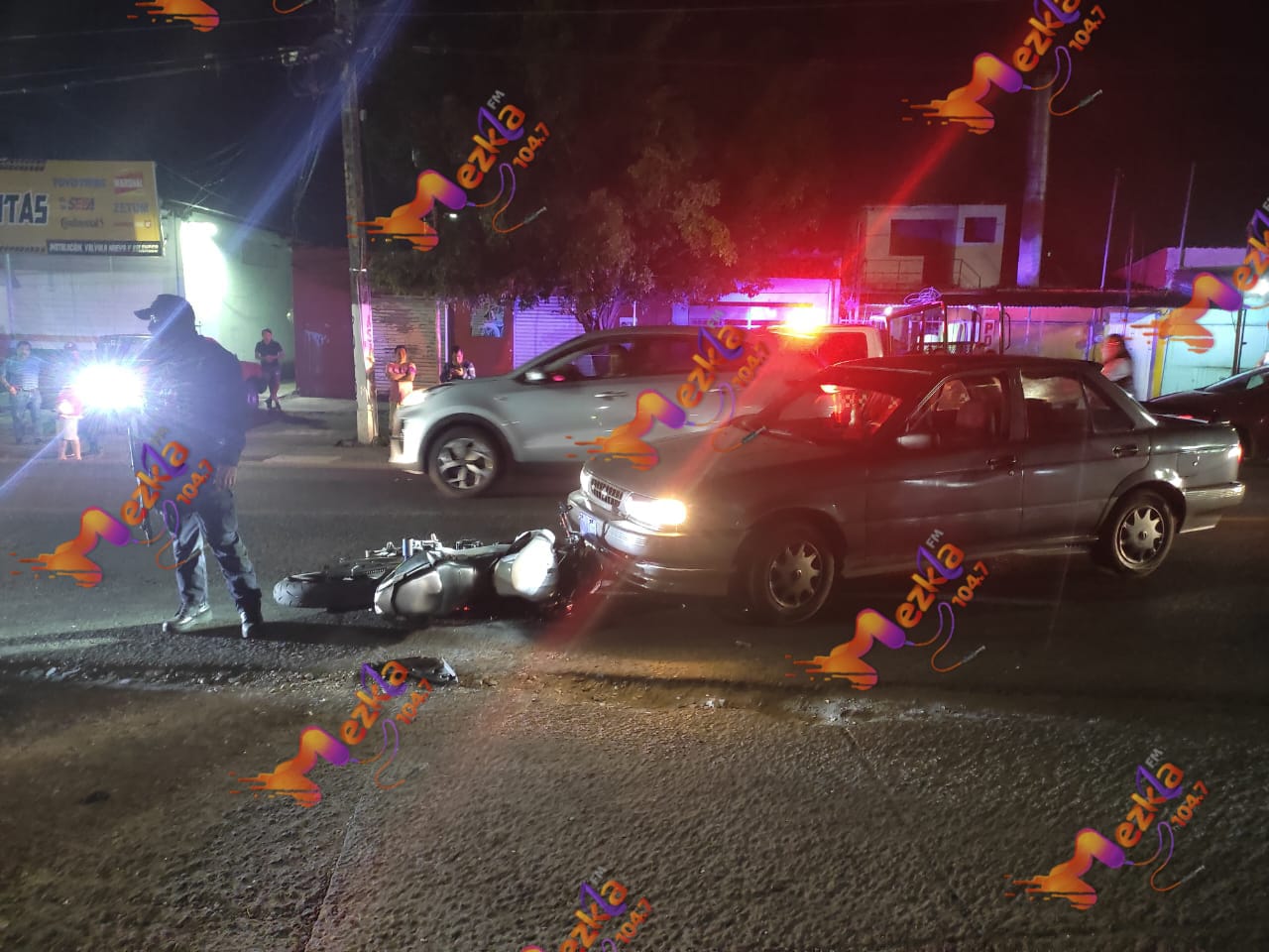 Hoy por la noche sobre el boulevard 5 de febrero entre la colonia El Arenal y Pueblo Nuevo, se registró un percance vial entre una motocicleta y un auto tipo Tsuru, que dejó como saldo al conductor de la moto golpeado.