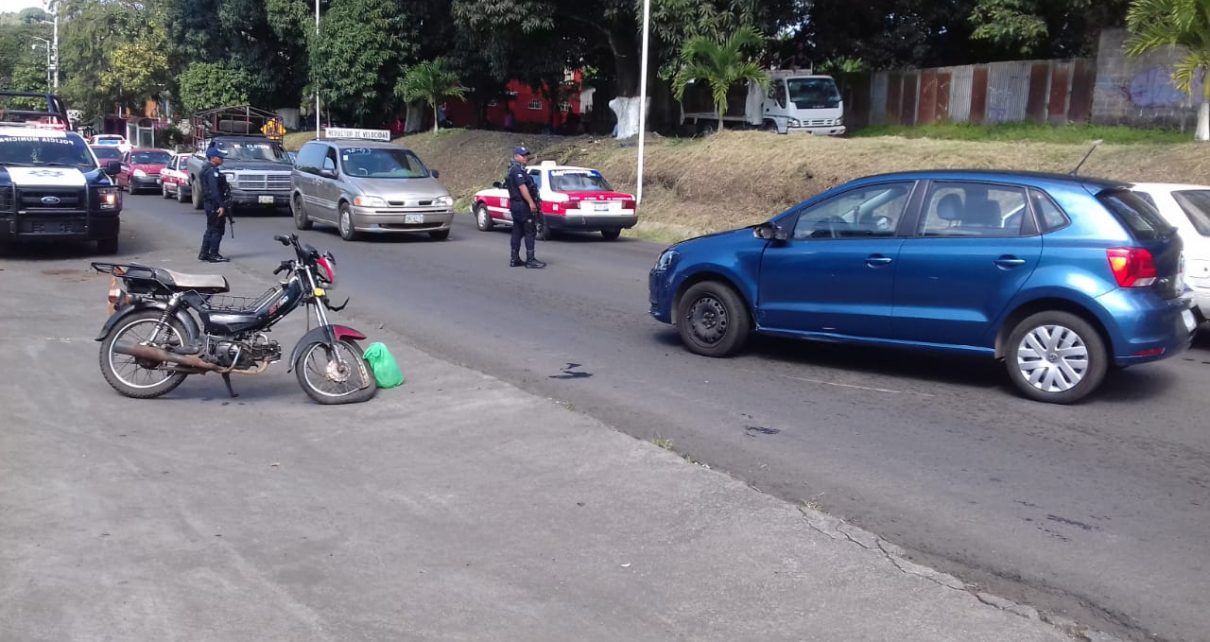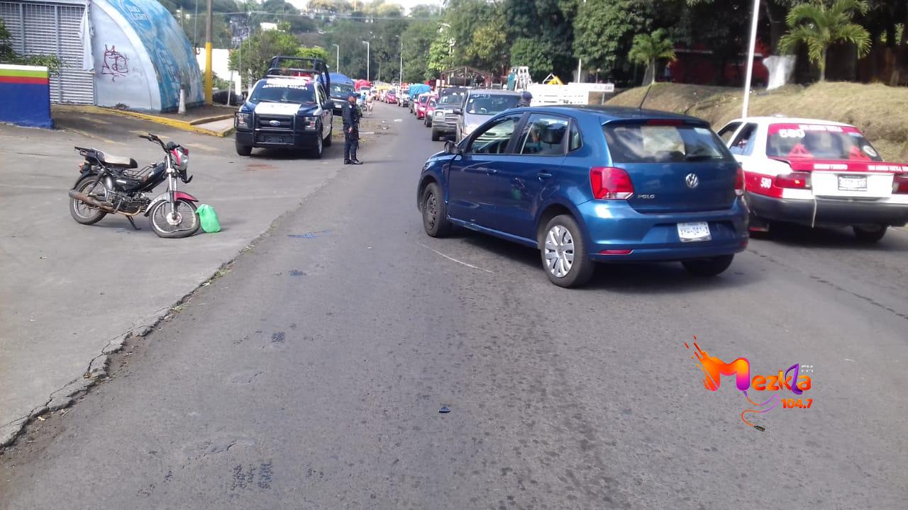 Sergio Herrera Montán/ San Andrés Tuxtla, Ver.- La tarde de este día se registró un percance vial sobre la carretera federal 180, a la altura de la colonia Emiliano Zapata, donde participaron una motocicleta y un vehículo Volkswagen, que dejó como saldo una persona con golpes contusos.