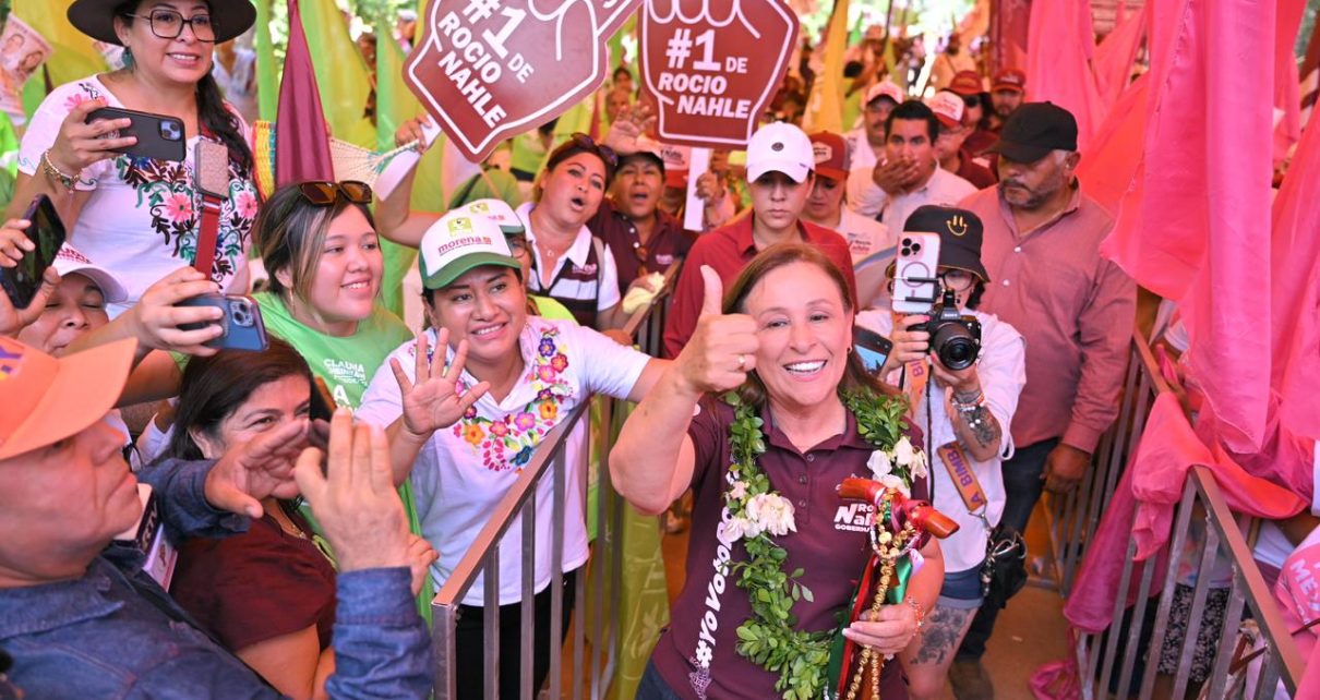 Santiago Sochiapan, Ver., jueves 23 de mayo de 2024.- Hoy, en la cuna de la Cuarta Transformación, el sureste de Veracruz, la candidata a la gubernatura por Morena, PT, PVEM y Fuerza por México, Rocío Nahle García, comenzó sus precierres de campaña donde presentó, como en cada asamblea pública, sus ocho ejes y 80 compromisos para los siguientes seis años.