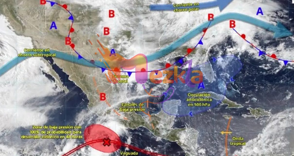 Canales de baja presión sobre el oriente y sureste de la República Mexicana, en combinación con el paso de una onda tropical sobre el sureste del territorio nacional, divergencia y el ingreso de humedad del golfo de México y océano Pacífico, generarán chubascos y lluvias fuertes a muy fuertes acompañadas con descargas eléctricas y posible caída de granizo en ambas regiones, pronosticándose lluvias puntuales intensas el viernes en Veracruz, Puebla y Oaxaca, pronostica la Comisión nacional del Agua (Conagua).