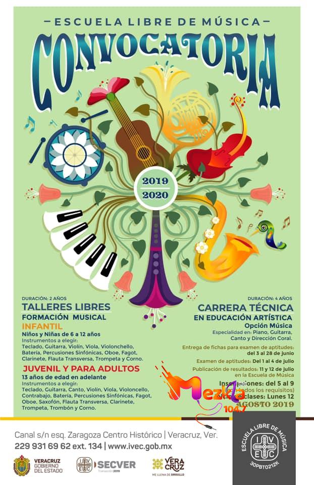 Veracruz, Ver.- La Escuela Libre de Música del Instituto Veracruzano de la Cultura (IVEC) convoca a la comunidad a cursar la Carrera Técnica en Educación Artística, opción música, con especialidad en piano, guitarra, canto y dirección coral, además de sus talleres libres de Formación Musical Infantil, Juvenil y de Adultos.