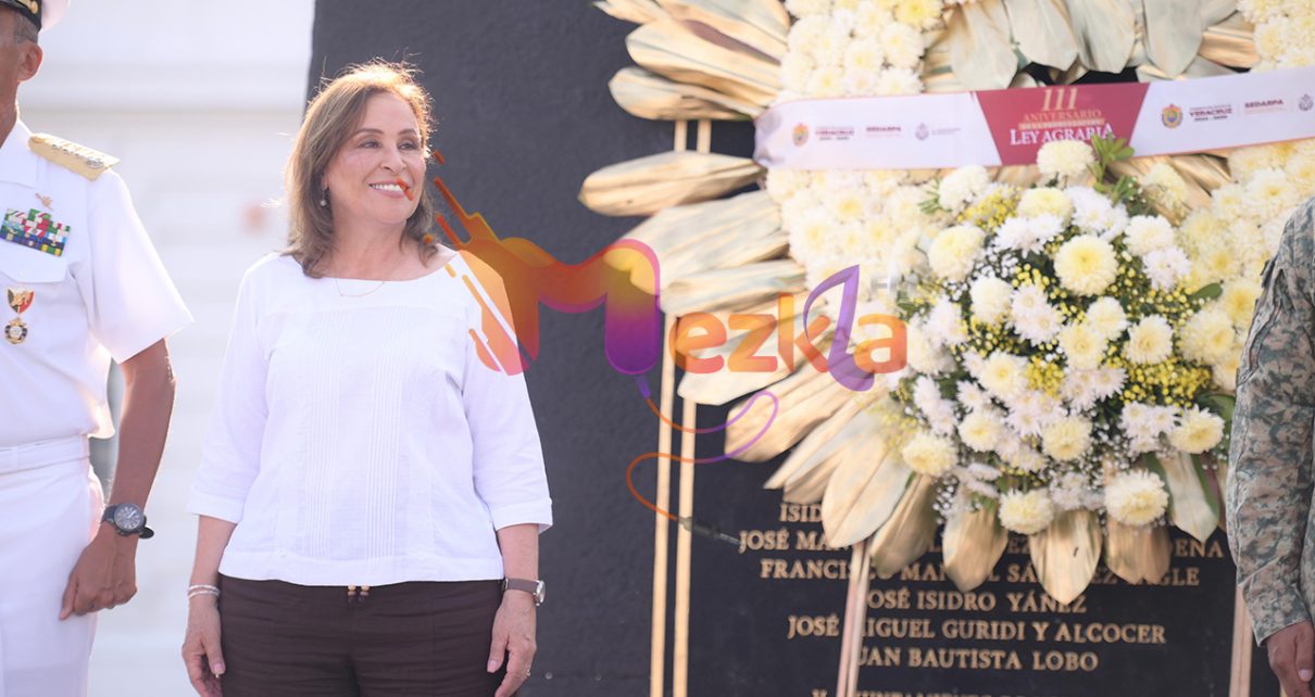 Veracruz, Ver., martes 6 de enero de 2026.– Con una guardia de honor y el depósito de ofrenda floral ante el monumento a Venustiano Carranza, la gobernadora Rocío Nahle García, junto con autoridades de los tres órdenes de gobierno, conmemoró el 111 aniversario de la promulgación de la Ley Agraria.