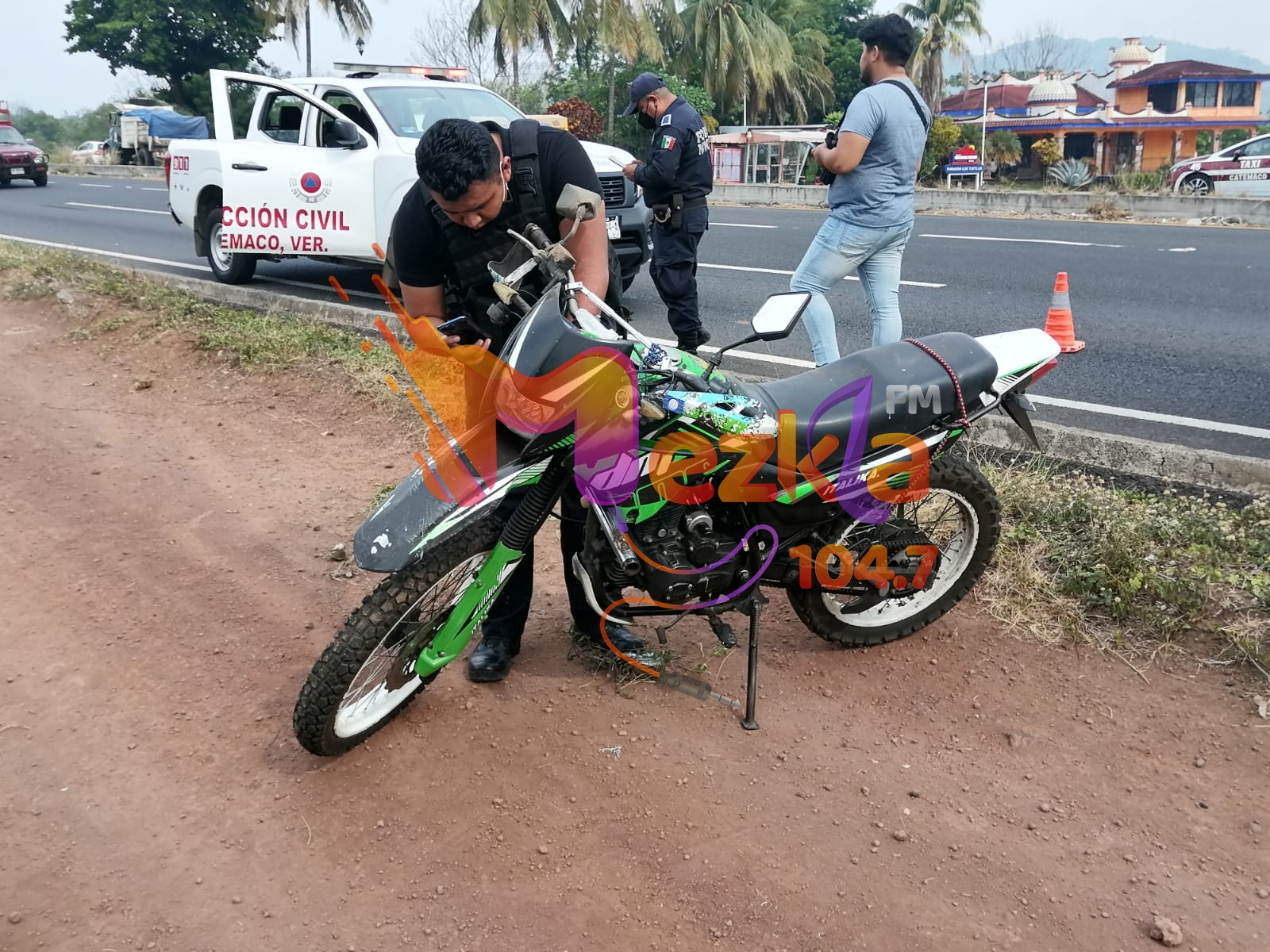 En el lugar del accidente atendieron al conductor de la motocicleta quien se identificó como Eduardo Javier Chigo con domicilio en Catemaco, quien al igual que la mujer fueron canalizados al hospital civil de Catemaco.