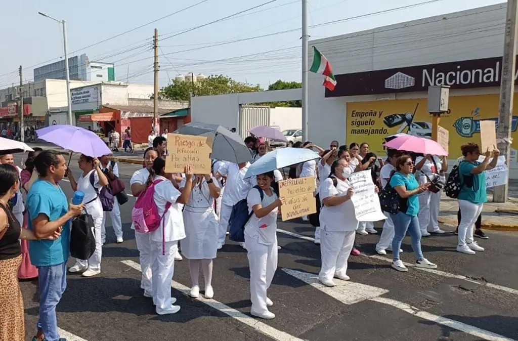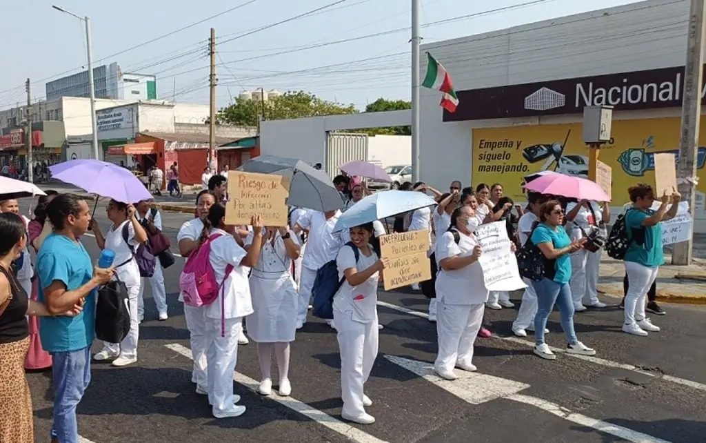 Personal del IMSS UMAE 14 se volvieron a manifestar en la avenida Cuauhtémoc e Icazo por las malas condiciones en las que trabajan.