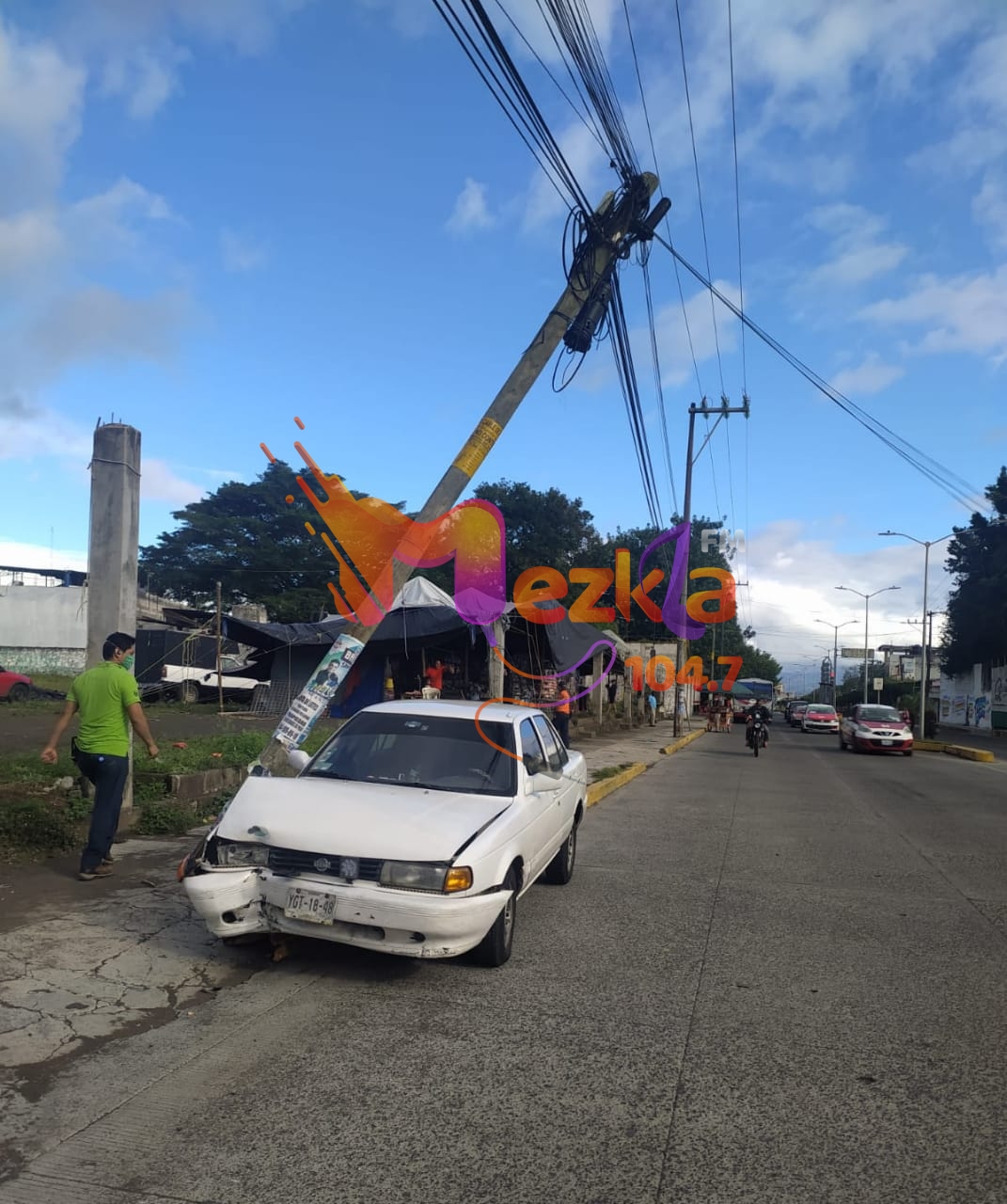 Se trató de un choque frontal donde participó un vehículo tipo Tsuru, color blanco, con matrícula del estado de Veracruz, que al parecer era conducido de manera temeraria, por lo que su conductor perdió el control de la dirección y terminó impactado contra un poste de madera propiedad de Teléfonos de México.