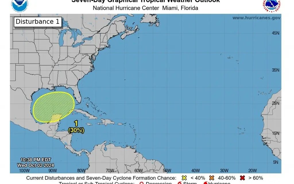 Asimismo, apuntan que “se prevé que las condiciones del ambiente sean favorables para un lento desarrollo del sistema y, el fin de semana, una depresión tropical podría formarse, mientras la amplia circulación del disturbio se ubique sobre el Golfo de México.