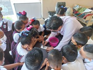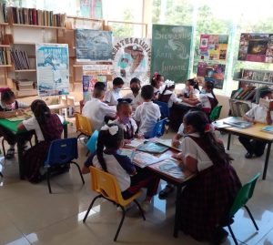 Los alumnos del 3° grupo “B” de la Esc. Prim. “Lic. Benito Juárez García” de Santiago Tuxtla, en compañía de la Profa. Beatriz Adriana Rivera Castro realizaron una visita guiada a la biblioteca local, donde llevaron a cabo experimentos e hicieron actividades relacionadas con el fomento a la lectura.