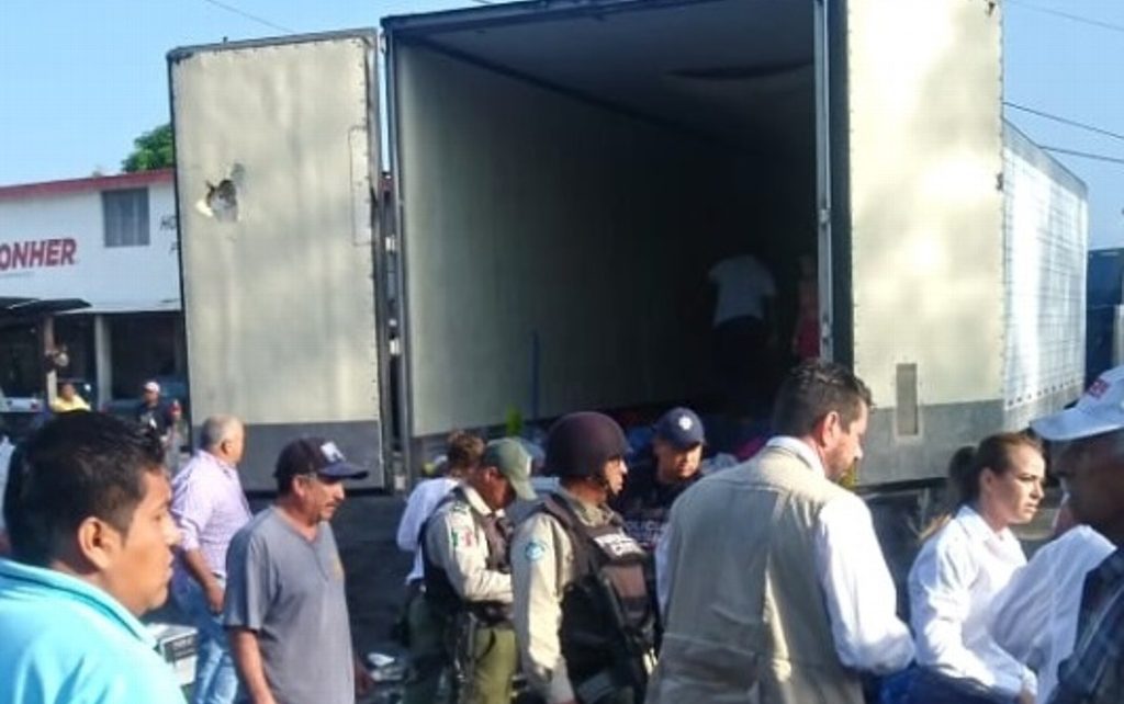 Fueron rescatados 200 migrantes que viajaban en la caja de un tráiler y fueron abandonados en Ozuluama, municipio de Veracruz.