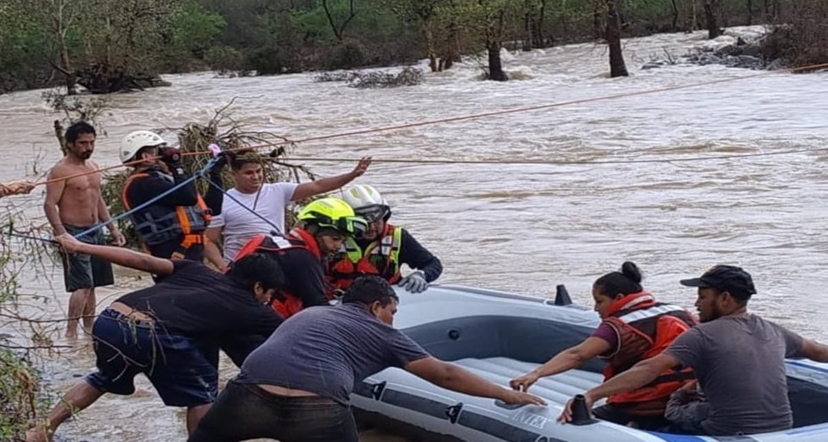 Tres adultos y un menor fueron rescatados con el uso de cuerdas y una lancha, al quedar incomunicados por la creciente del río Chihue, en el municipio de Jaumave.