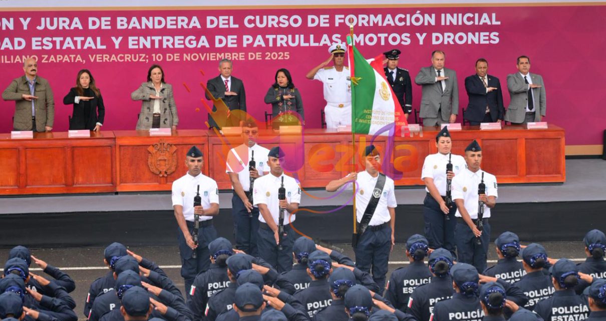 En representación de la LXVII Legislatura del Estado de Veracruz, la presidenta de la Mesa Directiva, diputada Naomi Edith Gómez Santos, acudió a la Ceremonia de Graduación y Jura de Bandera del Curso de Formación Inicial para Policía de Proximidad Estatal y Entrega de Patrullas, Motos y Drones, encabezada por la gobernadora de Veracruz, Rocío Nahle García. La inversión, que supera los 200 millones de pesos, fortalece las capacidades operativas de la fuerza policial e impulsa la Estrategia Estatal de Seguridad para mantener la paz en Veracruz.