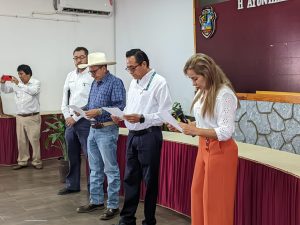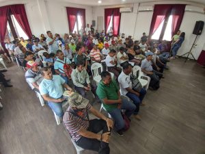 Catemaco, Ver.- Acompañando a la Diputada Federal Lic. Paola Tenorio Adame, el Presidente Municipal Lic. Juan José Rosario Morales asiste a una reunión informativa con pescadores de diversos puntos del municipio. A esta reunión también asistieron el Ing. Marcos Patlax Vázquez, Súperintendente de CFE Zona Los Tuxtlas, y el Ing. Guillermo Zuñiga Ortiz, Súperintendente Auxiliar, para tratar el tema de la rehabilitación de la malla protectora ubicada por el puente Canseco.