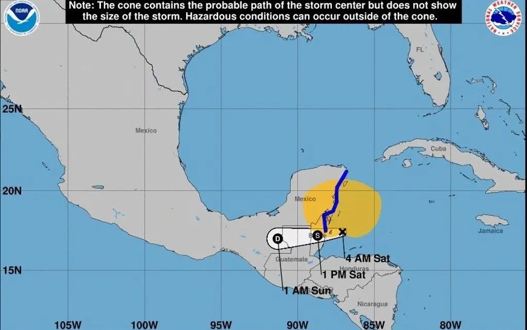 De acuerdo con el NHC, se esperan condiciones de tormenta tropical en Belice y la Península de Yucatán.