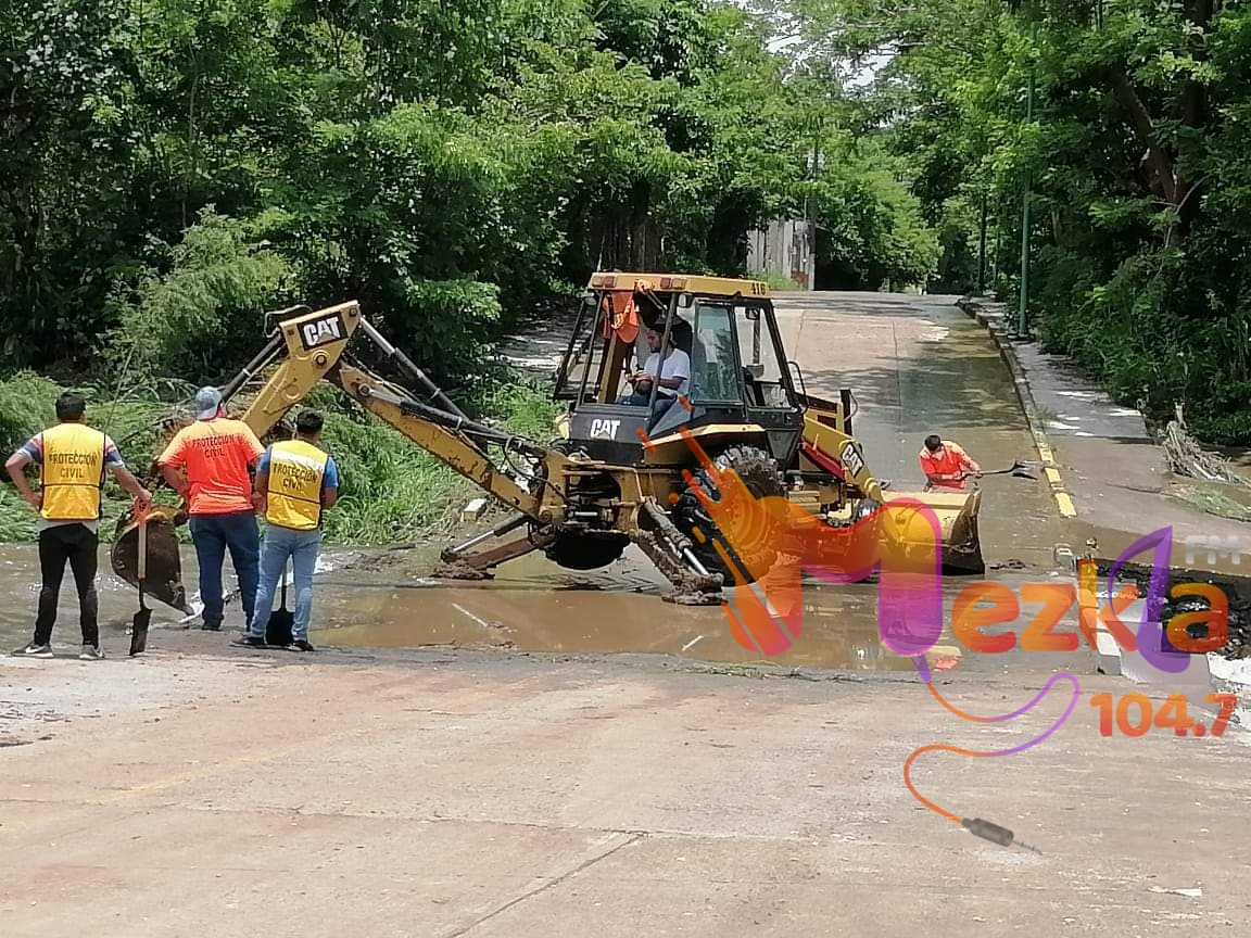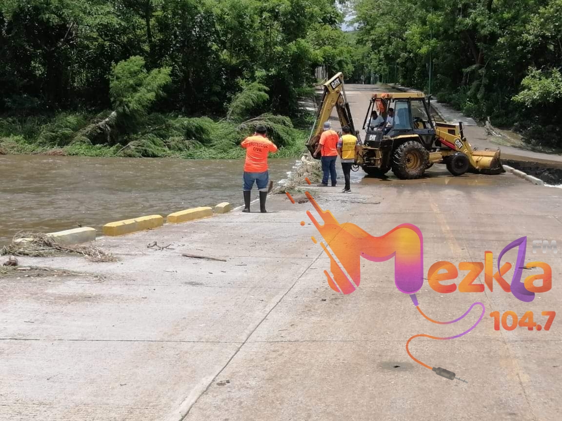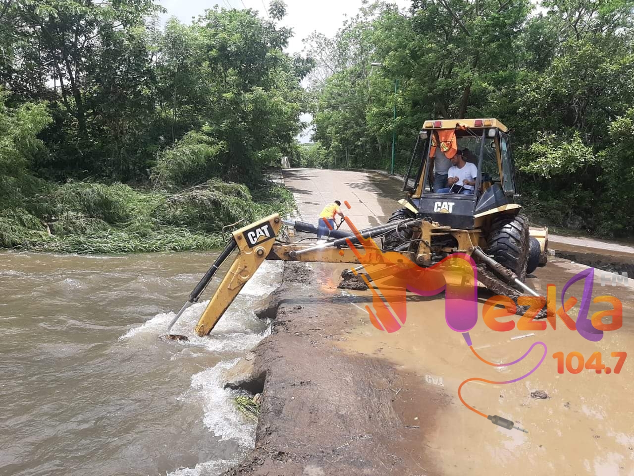 Santiago Tuxtla.- Por instrucciones del Presidente Municipal Lic. Argeniz Vázquez Copete se lleva a cabo la limpieza y desasolve del puente-vado ubicado a la altura de la colonia El Palenque, al igual que el puente que conduce a Tetax Sesecapan, tras la lluvia de esta madrugada.