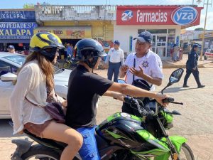 Ángel R Cabada, Ver.- Durante el día de hoy se lleva a cabo el operativo de tránsito por parte de Tránsito Municipal en coordinación con la Dirección de Seguridad Pública con la finalidad de concientizar a los motociclistas sobre el uso del casco de seguridad.