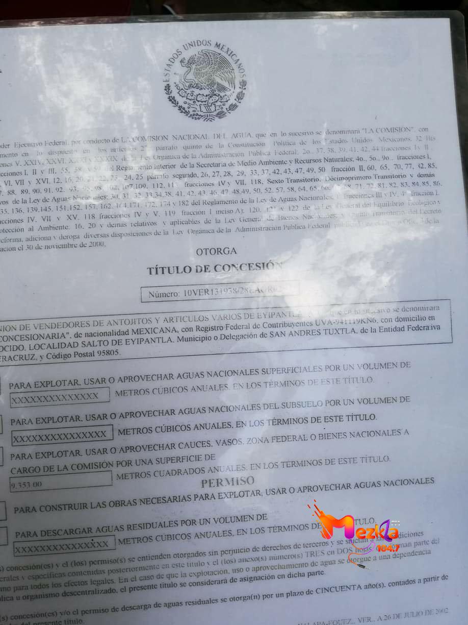 En la parte baja de la cascada del Salto de Eyipantla las cobradoras de la unión de vendedores argumentan que se paga el derecho de concesión por el uso de aguas nacionales, sin embargo esto no habría que declararlo puesto que en la parte superior de la cascada se paga una cuota también, y que argumentan es para la rehabilitación conteste del lugar, es decir, emiten dos respuestas distintas dejando mal parado al atractivo lugar.