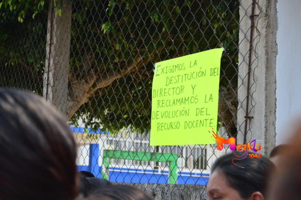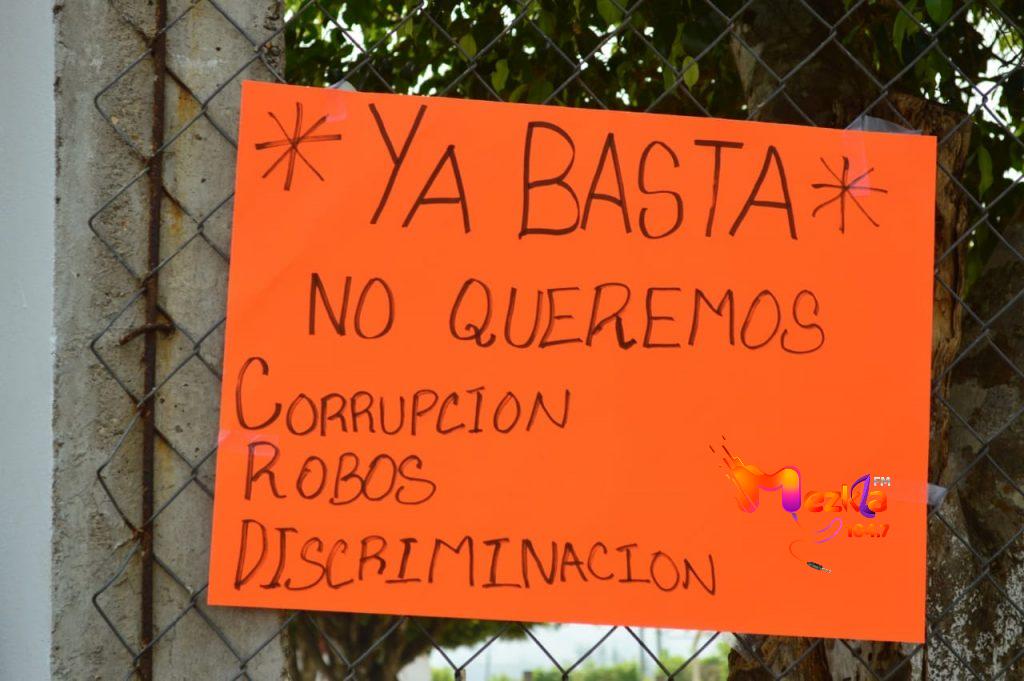 “Exigimos la destitucion del director”, “ya basta no queremos corrupción, robos discriminación”, fueron algunos mensajes que se colocaron en la entrada del plantel educativo, después que también inquirieron al director por cobros indebidos a padres de familia y a la sociedad de padres como: alteración de costos por la compra de fotocopias, cobros excedidos para trámites y materiales educativos entre otros.