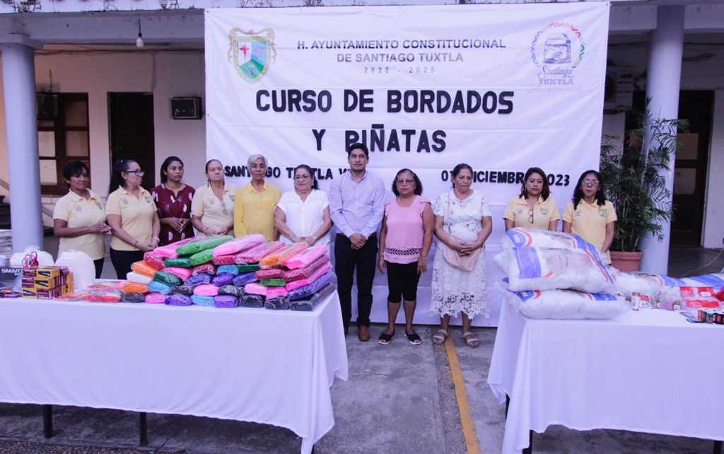 Santiago Tuxtla, Ver.- Esta tarde se llevó a cabo la inauguración de los cursos de Bordado y Piñatas que el H. Ayuntamiento de Santiago Tuxtla que preside la Profa. Kristel Hernández Topete brindará a través del DIF Municipal a cargo del Lic. Julio César Vázquez Copete, los cuales estarán impartidos por las maestras Rosa María Mazaba Lindo y Concepción Caballero Pérez. En representación de la Presidente Municipal, asistió el Ing.