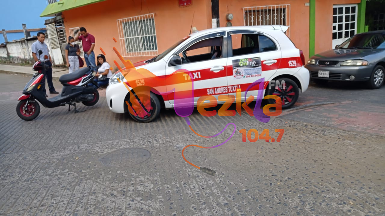 Hoy por la mañana en las inmediaciones de las colonias Belén Grande y Esperanza en el cruce que forman las calles Leona Vicario e Iturbide se registró un percance vial entre un vehículo del transporte público en su modalidad de taxi y una motoneta, que dejó como saldo una persona lesionada.