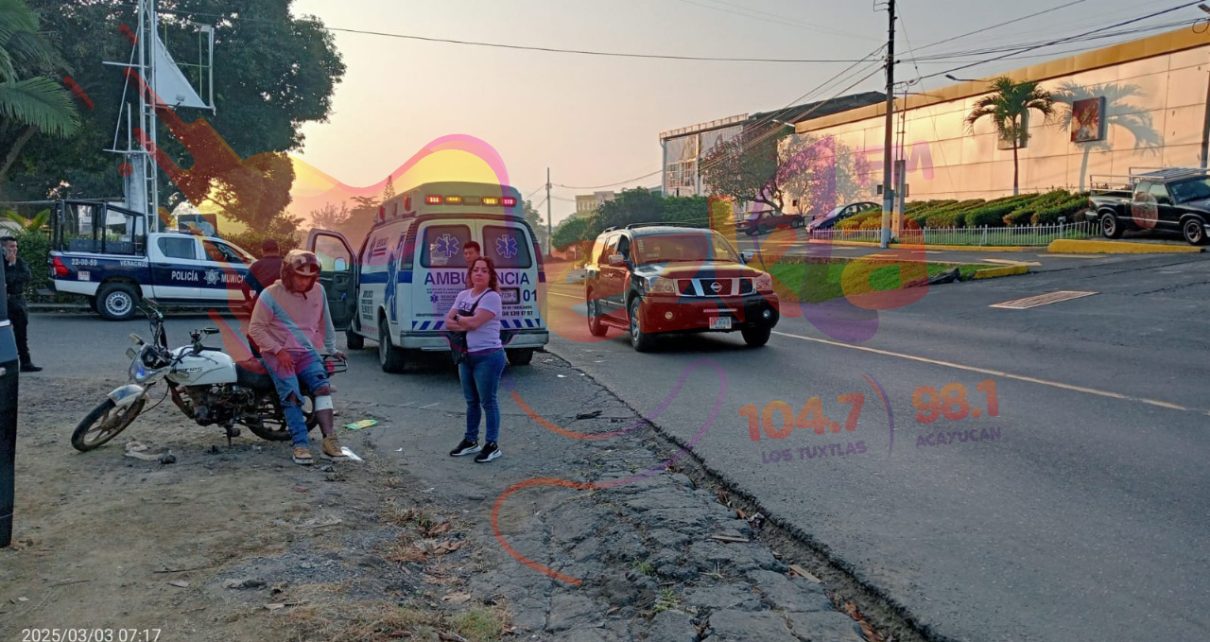 Por lo que el conductor de la moto de nombre Maximino Abrajan con domicilio en la comunidad de San Juan Seco, terminó por impactarse con el taxi, por lo que el joven salió proyectado hasta caer a un costado de la carretera, sitio donde fue atendido por los paramédicos del grupo SEOCAT.