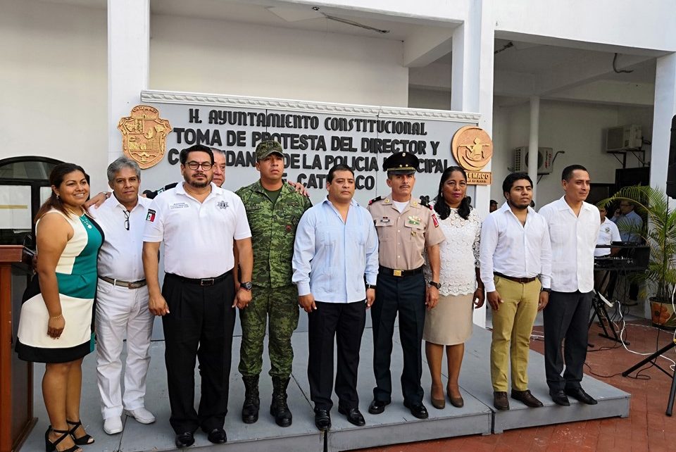 Catemaco.- El alcalde de Catemaco, Julio César Ortega Serrano, tomó protesta al nuevo Director de la policía Municipal C. P. Sergio Cacique Zarate, al Comandante Taurino Enrique Kanda Luna y Médico Legista Municipal Dr. Luis Francisco Sánchez Aguirre.