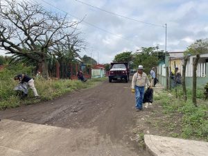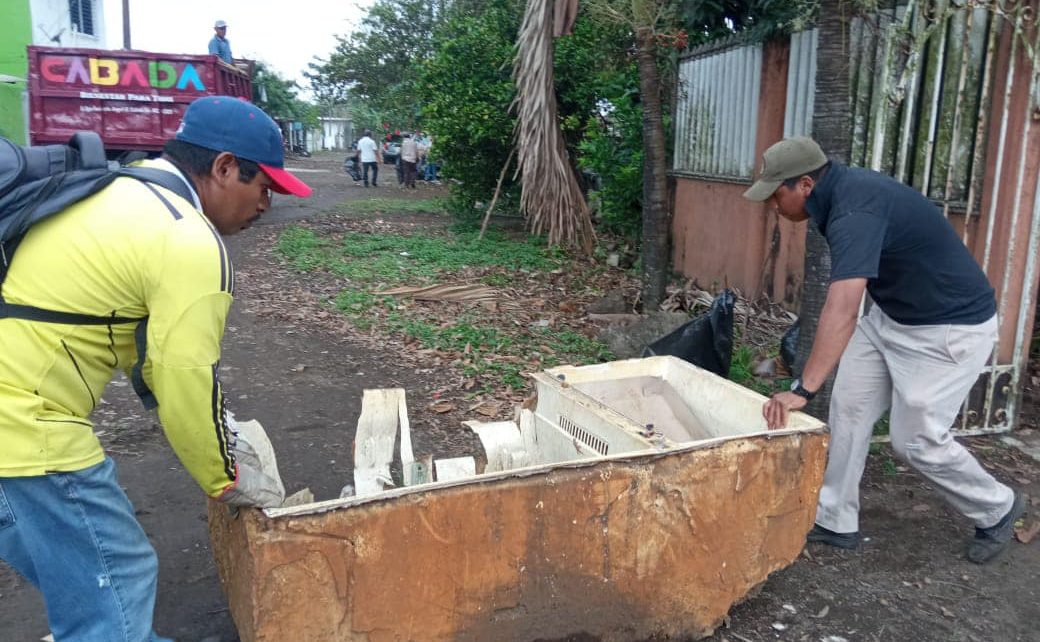 Ángel R.Cabada | Las coordinaciones de limpia pública y medio ambiente llevó a cabo trabajos de descacharrización en las calles Leona Vicario, Benito Juárez y Guadalupe Victoria de la colonia Jose Lopez Portillo como parte de la campaña contra el mosquito del dengue.