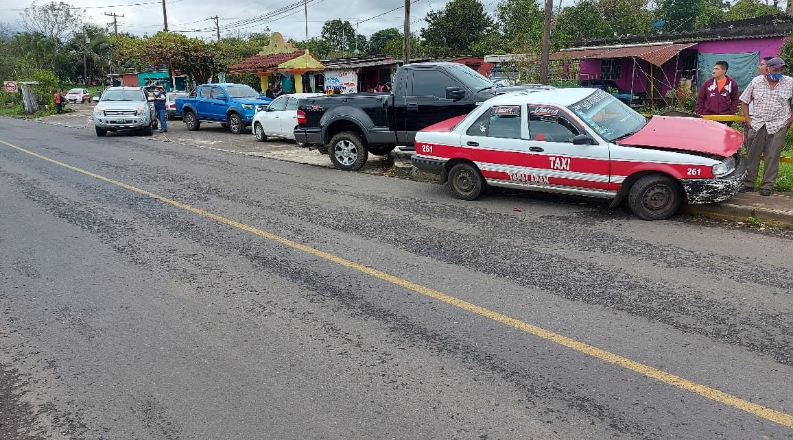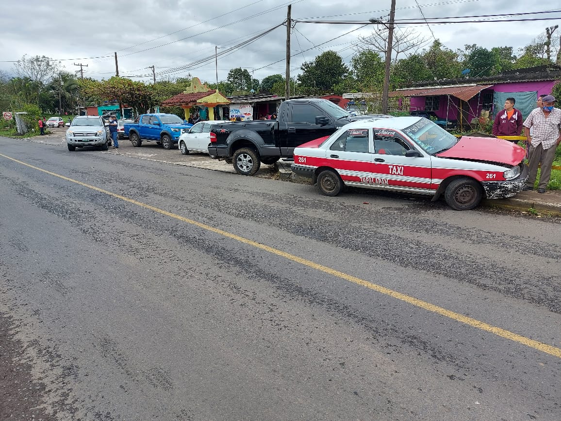 La tarde de este inicio de semana se registró un aparatoso choque lateral entre un taxi de la localidad de Tapalapan y una camioneta Ford, color negro.