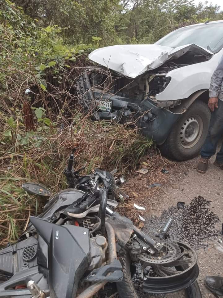 Ante el fuerte impacto la motocicleta quedó despedazada en su parte frontal y el cuerpo del ahora occiso a un costado; y a escasos metros la camioneta la camioneta pickup, color blanco doble cabina.