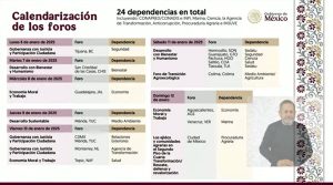 En la Mañanera del Pueblo, el coordinador de asesores de la Presidencia de la República, Jesús Ramírez Cuevas informó el calendario y las temáticas que del 06 al 17 de enero habrán de desarrollarse en todo el país para integrar el documento que posteriormente se discutirá y analizará.