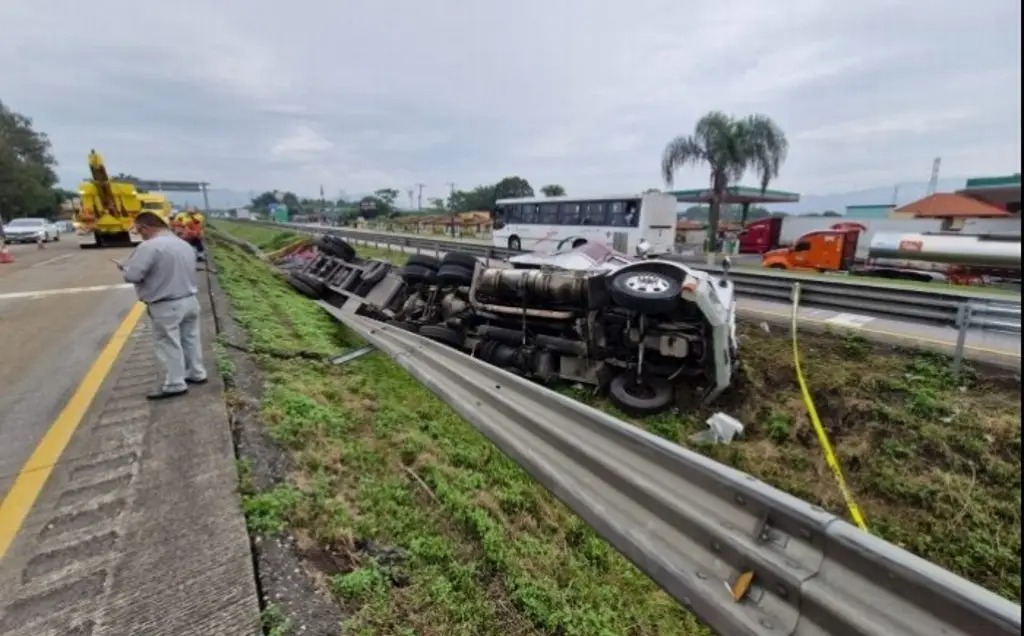 Una persona fallecida, daños materiales y cierre parcial de la circulación vehicular de la autopista 150D Orizaba-Córdoba, fue el saldo que dejó la salida de camino y volcadura de un tráiler que remolcaba dos planas cargadas con varilla procedente del Tultitlán, Valle de México y con destino el Estado de Quintana Roo.