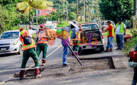 Presidente Municipal inicia acciones de bacheo en la carretera federal 180.